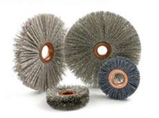 Copper center power brushes serve applications where light deburring, edge blending and general surface finishing are necessary. With many different diameter sizes and abrasive types available, these wheel brushes work well in a variety of applications. For larger surface areas, abrasive brushes work best. These copper center wheel brushes can be mounted and come in a range of arbor hole sizes.