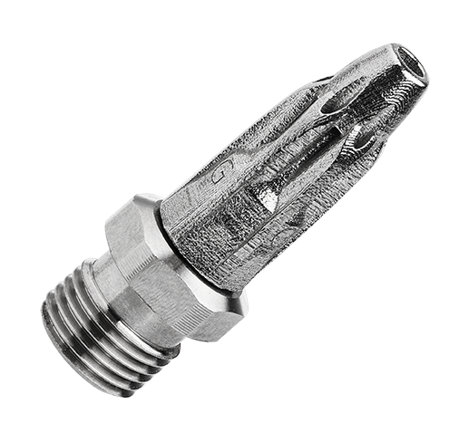 SIL.X01 is a stainless steel blowing nozzle with patented multi Laval technology. The energy saving air nozzle is part of Silvent’s revolutionary new X-series. The nozzle in the new X series has a completely new and innovative design that creates a concentrated jet of air with reduced turbulence, thus enabling a more targeted, effective blowing force. Thanks to the newly patented technology, the air nozzle’s design optimizes the air pressure’s change from potential energy to aimed concentrated kinetic energy. This allows for maximal use of the air pressure. The unique design makes it possible to reduce noise levels during blowing by more than 10dB(A). The blowing nozzle is perfect for environments with high cleanliness requirements, such as the food industry. SILVENT X01 is patented and fulfils the OSHA safety standards and the EU Machinery Directive’s noise level requirements. The nozzle has a 1/8" outer connection.