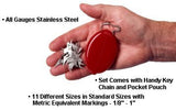 Eleven (11) different sizes in standard sizes with  Metric equivalent markings - 1/8"- 1"